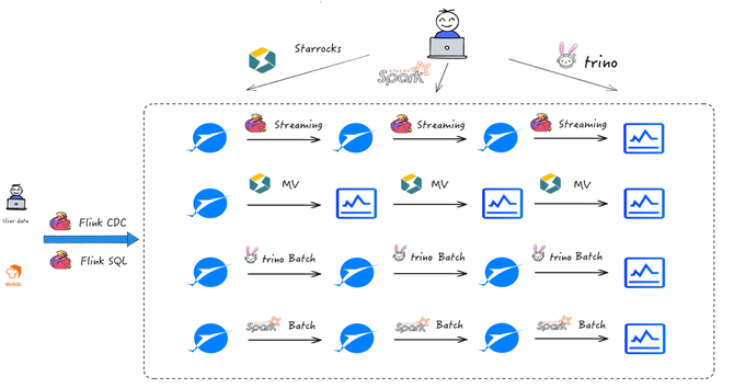 高速 OLAP 查询:将计算结果物化或直接接入 StarRocks,满足高性能、交互式的分析查询需求。