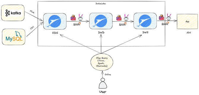 灵活的 Ad-hoc 查询与离线分析:借助 Trino 或 Apache Spark 引擎,对湖内数据进行灵活的即席查询与大规模批处理分析。