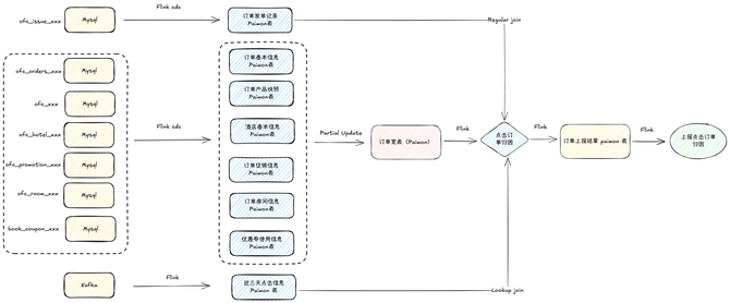 上报所需字段和逻辑在业务系统中涉及 7 张 MySQL 表,实时多流 Join 实现难度和成本较大、稳定性挑战较大。